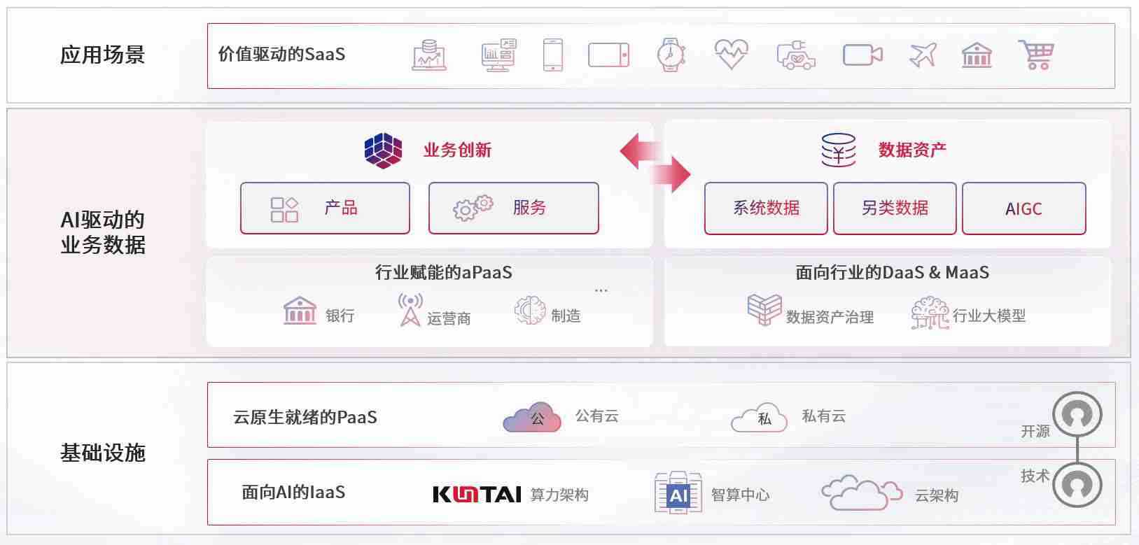 数字时代,,,,围绕企业数字化转型的关键要素,,老哥稳数码开创性的提出数云融合战略和技术体系框架,,着力在云原生、、、数字原生、、、、AI原生和信创产业上架构产品和服务能力,,,,为处在不同数字化转型阶段的快消零售、、、汽车、、、、金融、、医疗、、、、政企、、教育、、运营商等行业客户提供泛在的敏捷IT能力和融合的数据驱动能力,,构建跨界融合创新的数字业务场景和新业务模式,,,助力企业级客户建立面向未来的核心能力和竞争优势,,,全面推动社会的数字化、、、、智能化转型升级。。