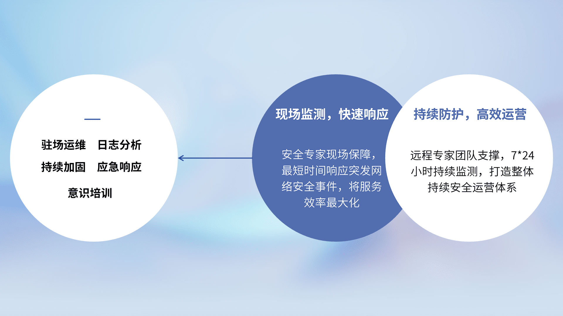7X24小时持续监测安全事件,保持安全策略有效性,降低资产脆弱性风险,,,,精准拦截黑客攻击,,减少被黑客利用的机会,,第一时间遏制,,,降低损失。。。。